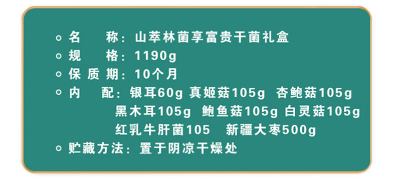 商品名称:山萃林 菌享·富贵山珍礼盒1190g 6972355232068