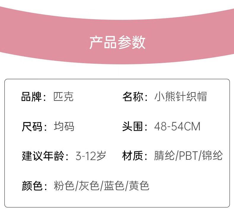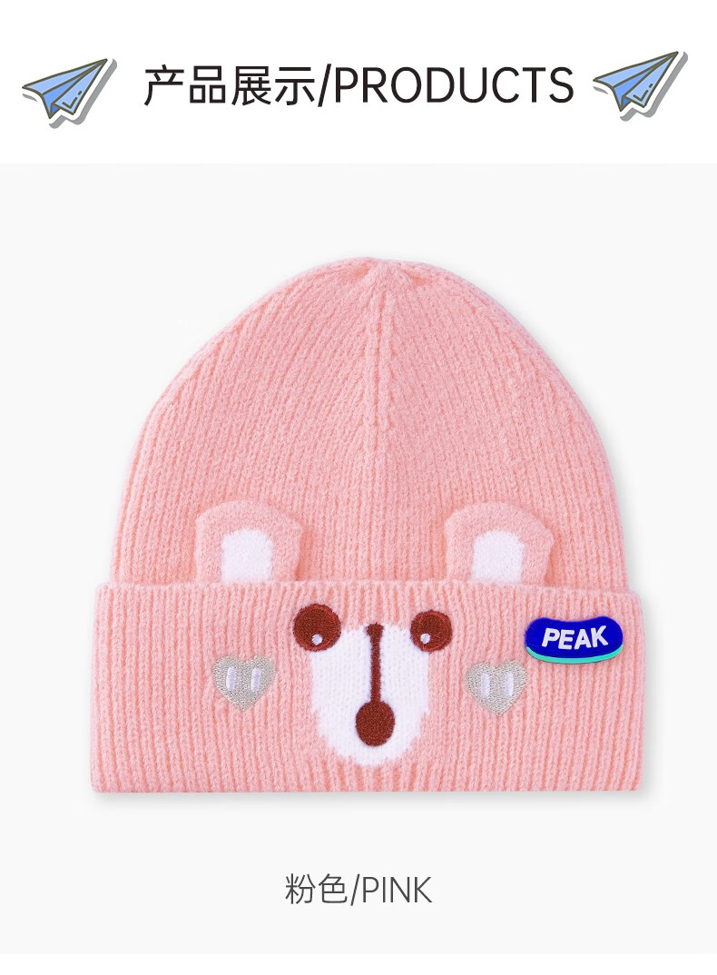 商品名称:匹克(PEAK)小熊针织帽 YH73406 粉色/蓝色/黄色/灰色 可选下单备注颜色