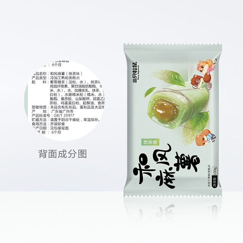商品名称:三只松鼠和风麻薯抹茶味150g*3 6956511919307