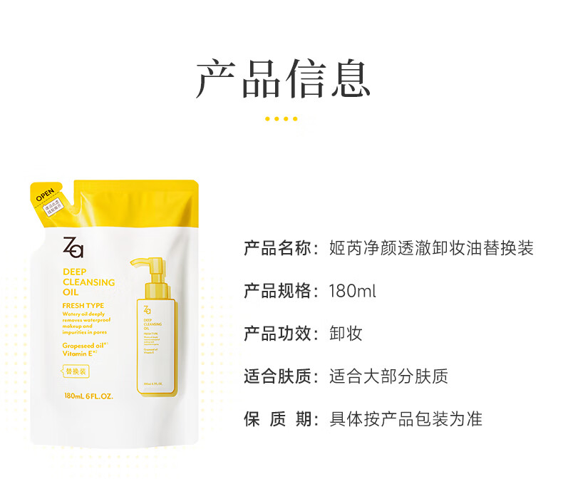 商品名称:姬芮 ZA 净颜透澈卸妆油<替换装>180ml 6926799690007