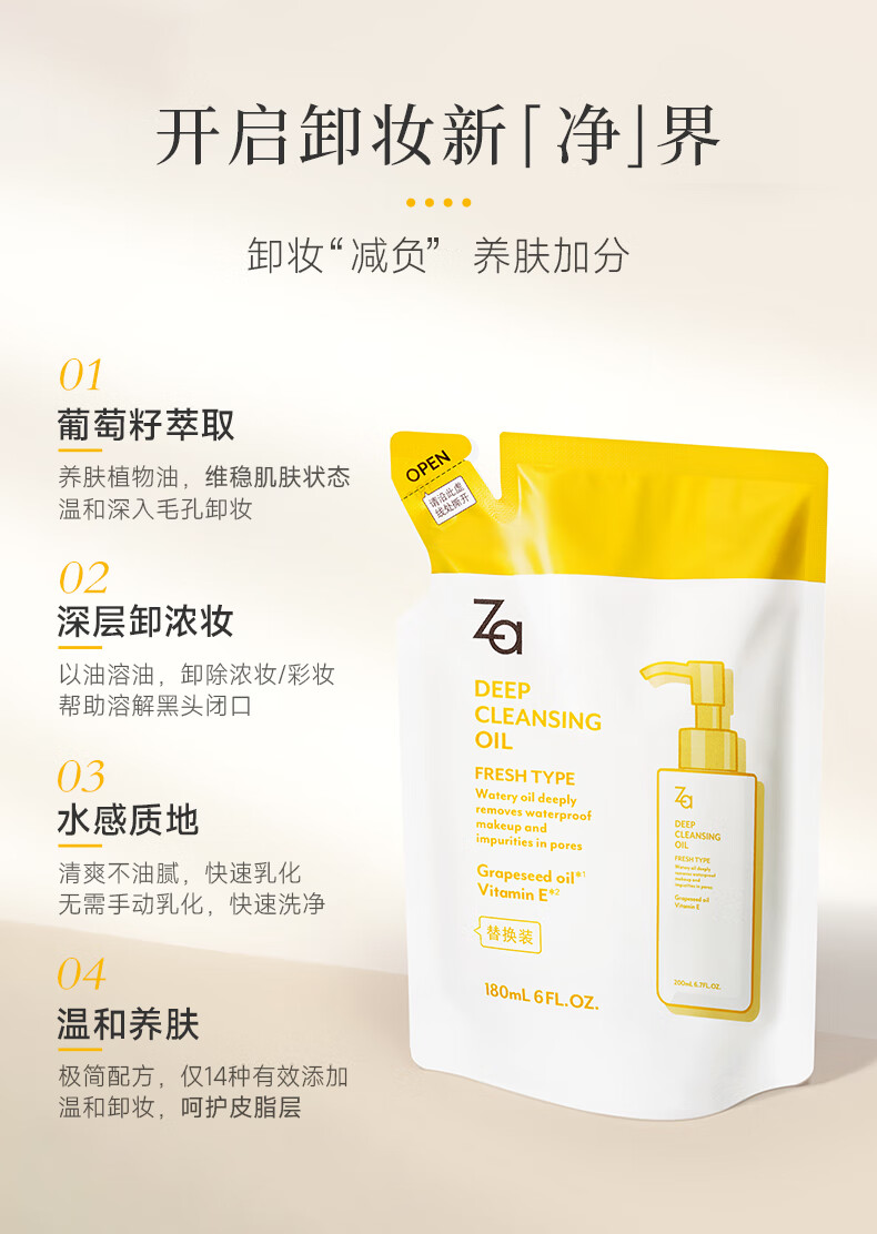 姬芮 ZA 净颜透澈卸妆油<替换装>180ml 6926799690007