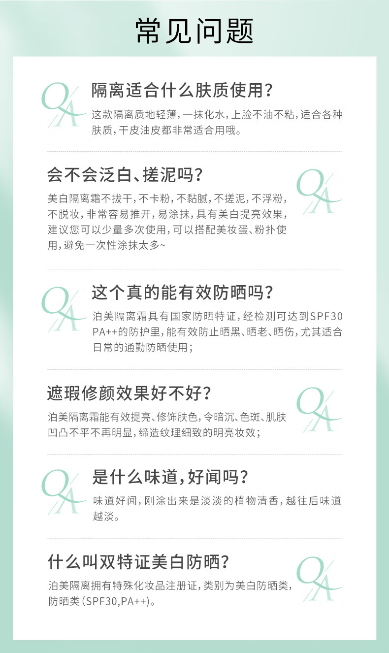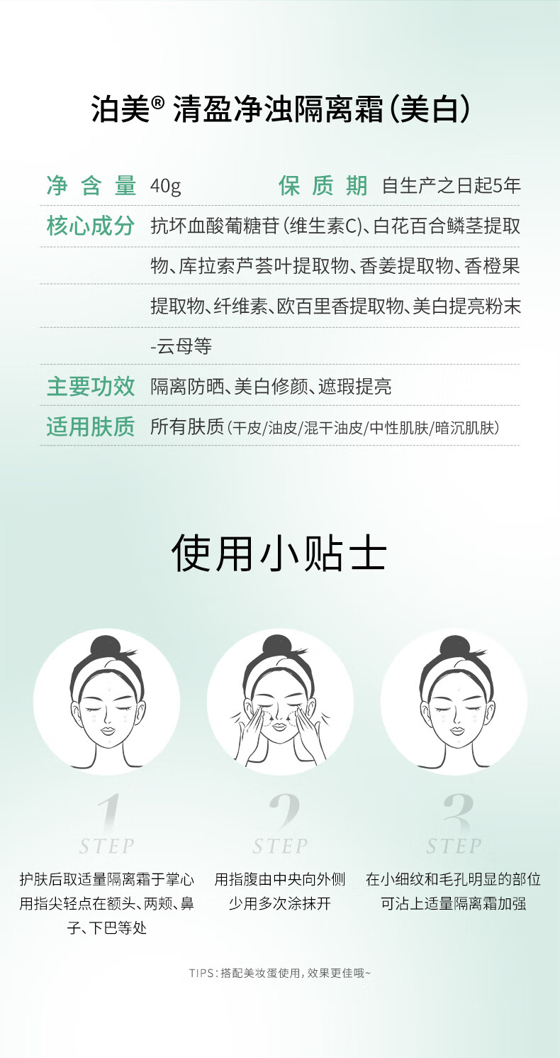 商品名称:泊美 清盈净浊隔离霜(美白)40g 6926799653873