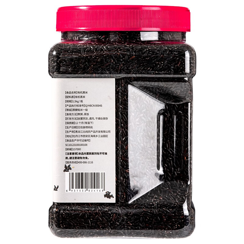 商品名称:北纯黑米有机黑米五谷杂粮东北黑米粗粮粥米杂粮粥 1.5kg罐装 6931532824168