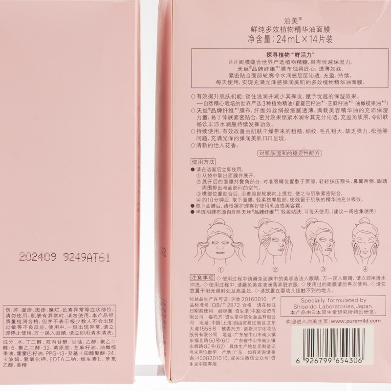 商品名称:泊美 鲜纯多效植物精华油面膜14片 6926799654306