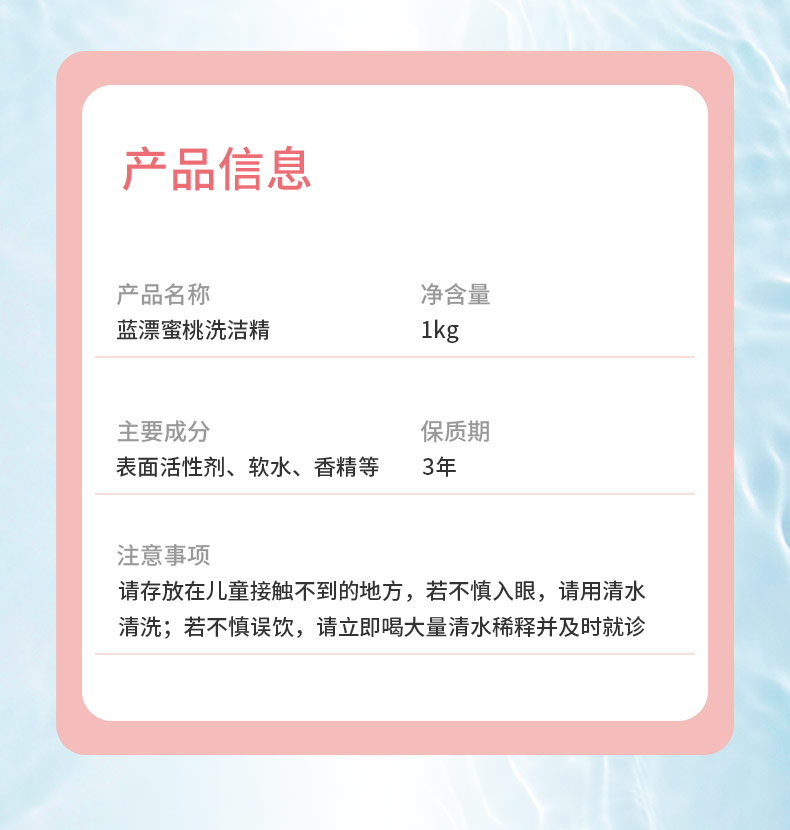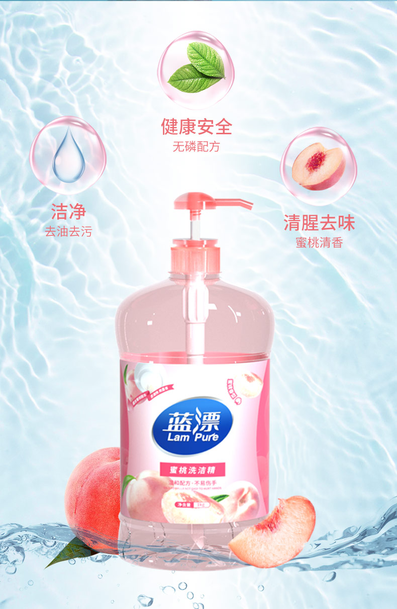 商品名称:蓝漂 蜜桃香型洗洁精2斤*1瓶LP-366980 6922454366980