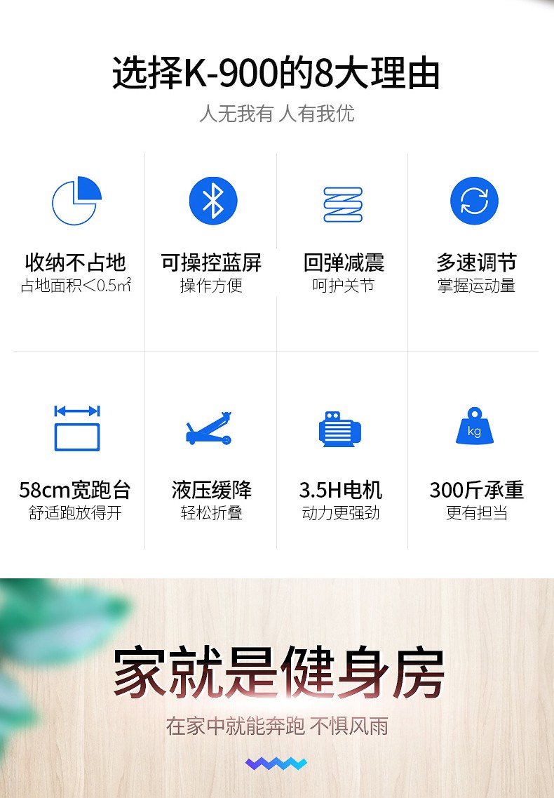 商品名称:勒德威K900蓝屏跑步机家用健身器材 多功能