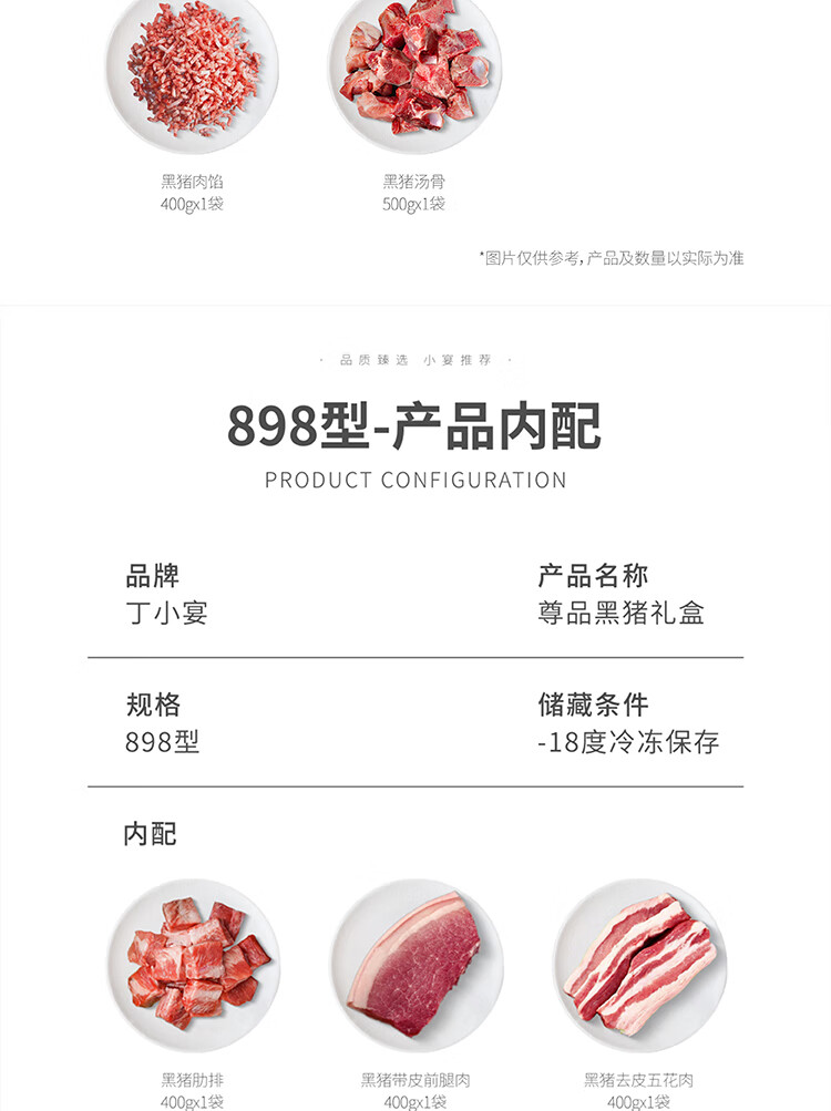 商品名称:丁小宴尊品黑猪礼盒商务团购送礼黑猪肉馅黑猪汤骨 尊品黑猪458型*2500g 6975557501574