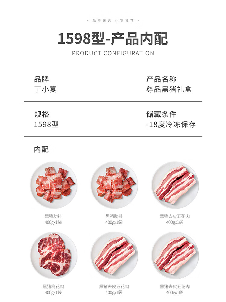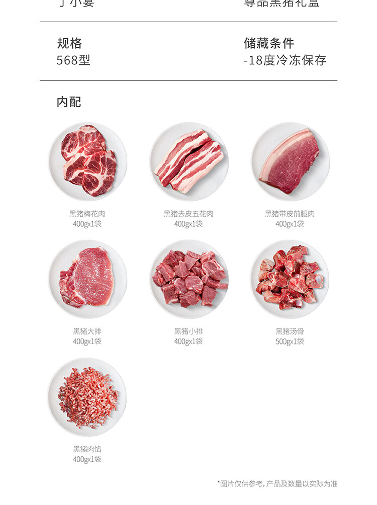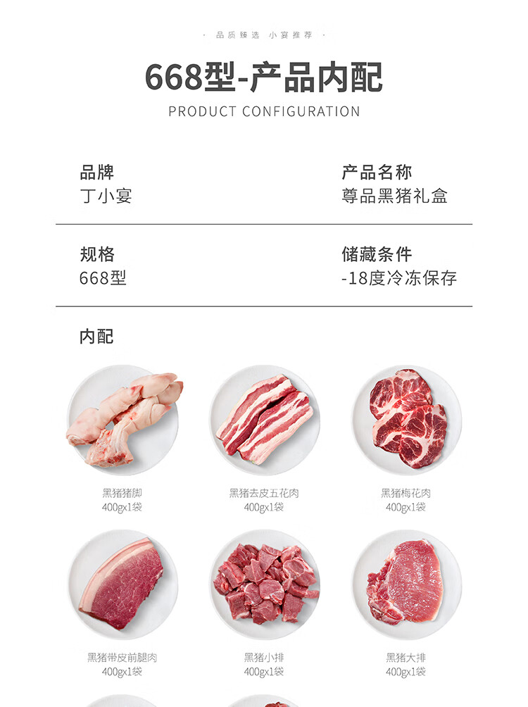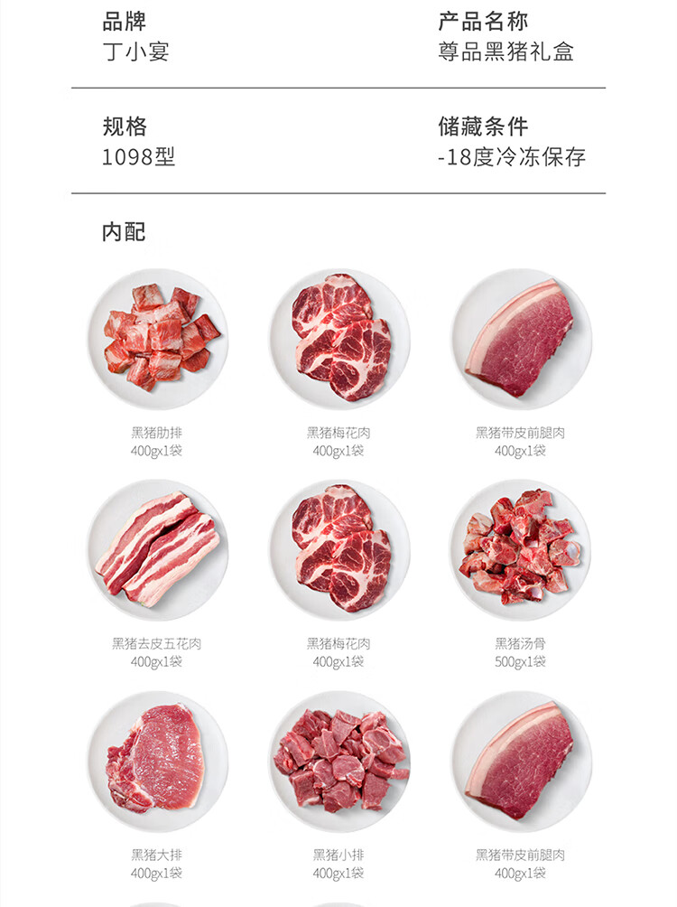 商品名称:丁小宴尊品黑猪礼盒商务团购送礼黑猪肉馅黑猪汤骨 尊品黑猪568型*2900g 6975557501581