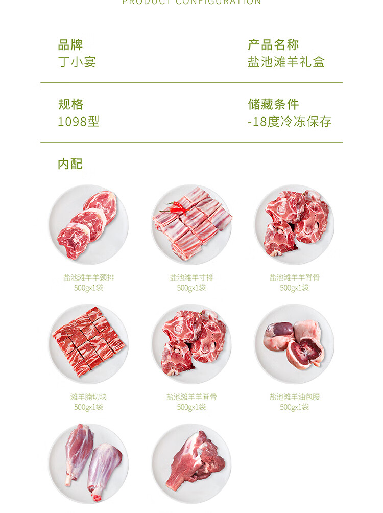 商品名称:丁小宴盐池滩羊礼盒羊肉礼盒滩羊羊肉切块 滩羊礼盒568型·2500g 6975557501505