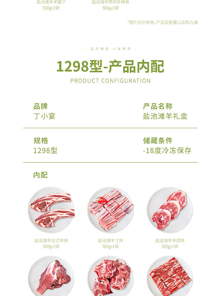 商品名称:丁小宴盐池滩羊礼盒羊肉礼盒滩羊羊肉切块 滩羊礼盒898型·3500g 6975557501529