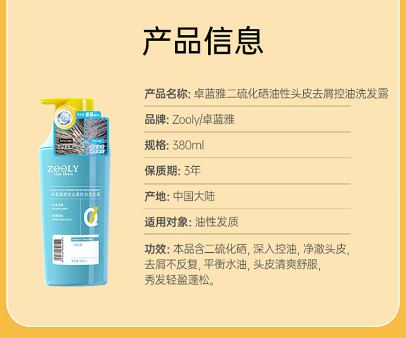 商品名称:卓蓝雅 婍迹去屑控油洗发露380ml