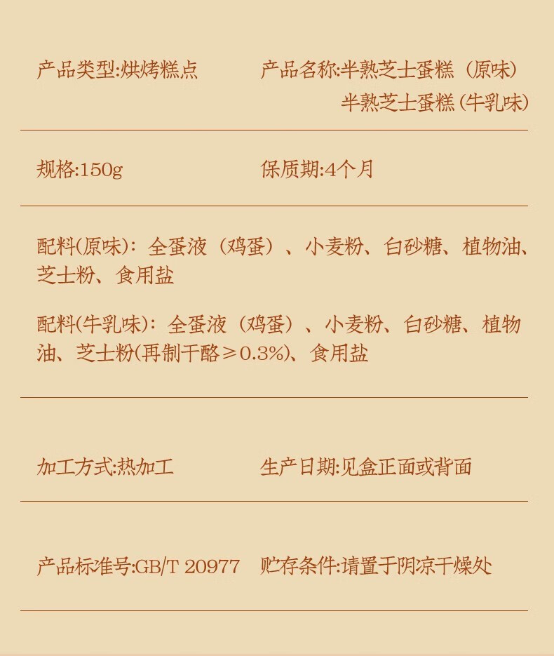 商品名称:藤野一村 半熟芝士蛋糕原味2盒*158g 4897081075081