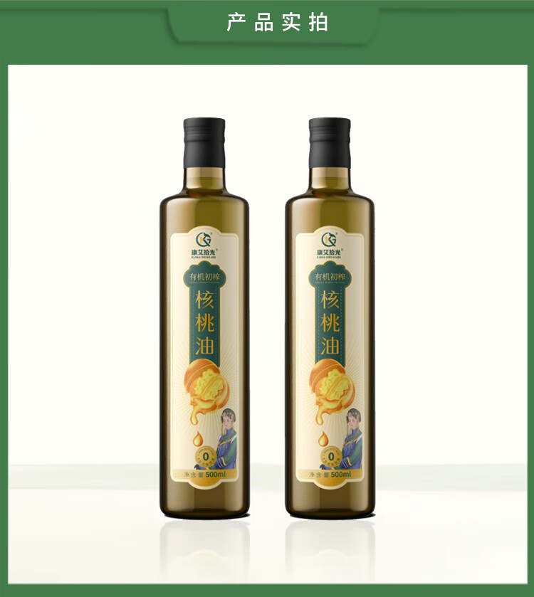 商品名称:康艾拾光 有机初榨核桃油500ml*2手提袋款 6974522680214