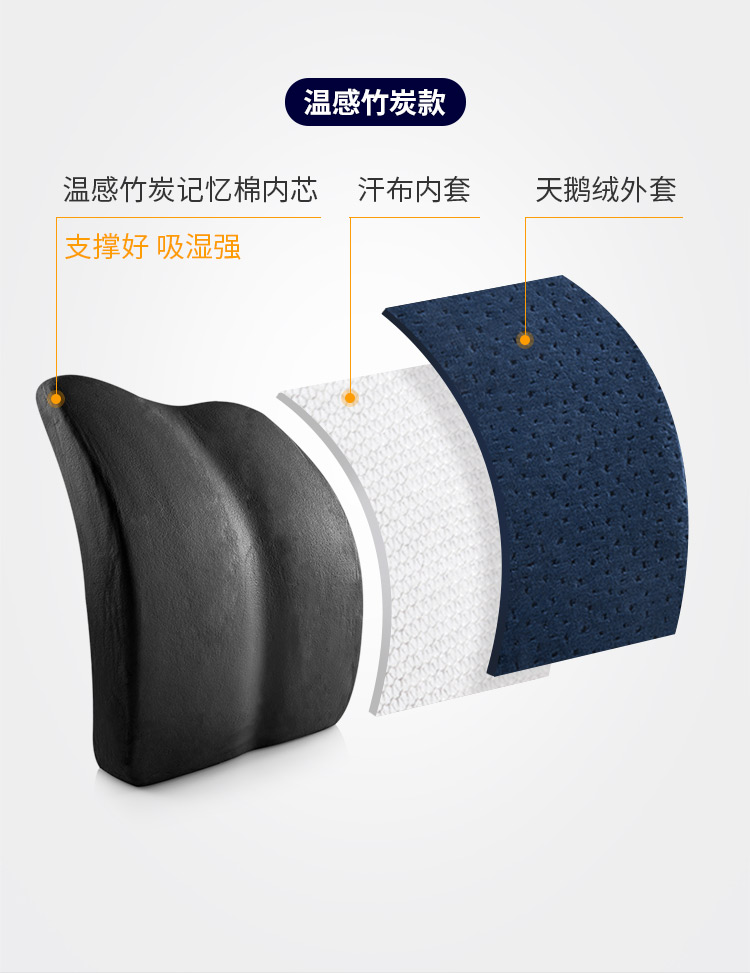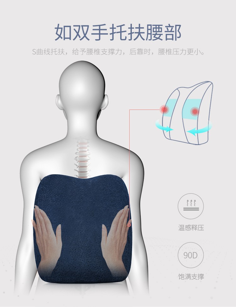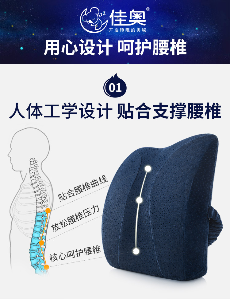 商品名称:佳奥护脊腰垫(竹碳记忆棉款)舒腰推荐-藏青色 42*35*8cm J06A14BS1 6926304819503