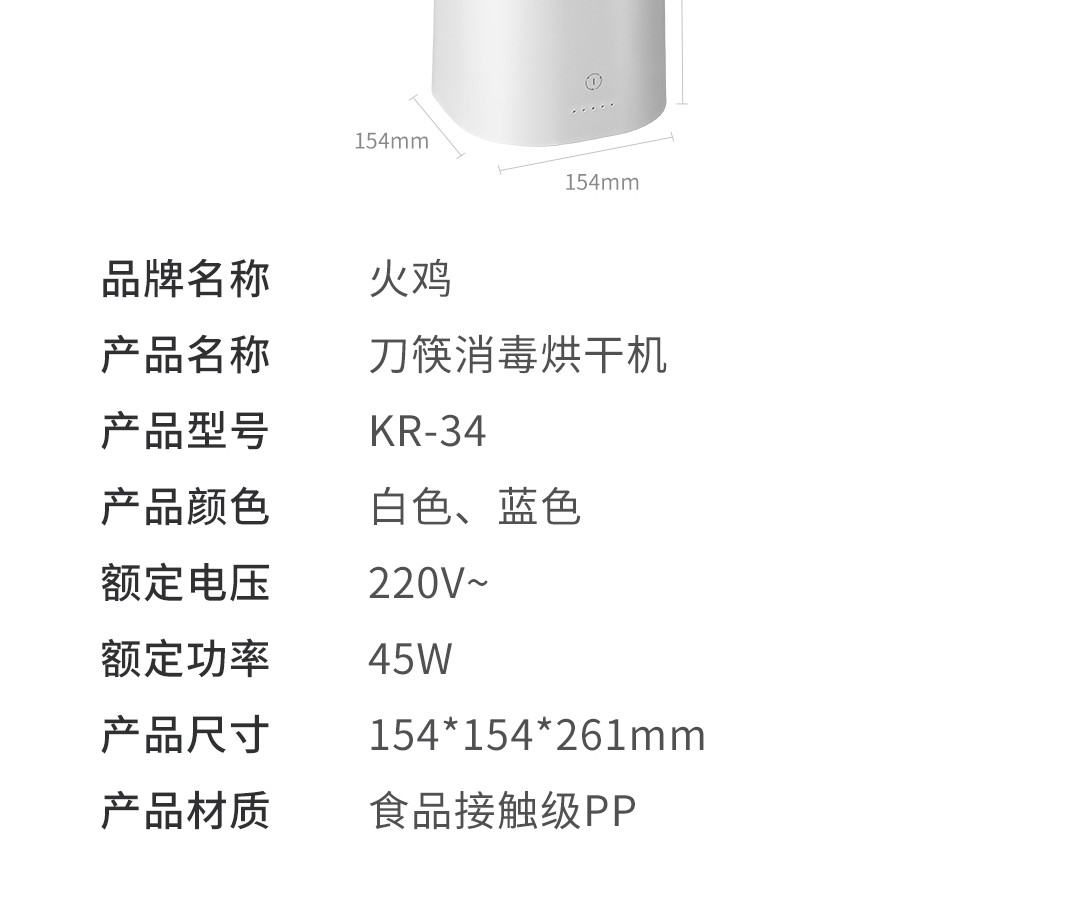 商品名称:火鸡智能消毒刀筷架KR-34单机(带滴水感应)白色