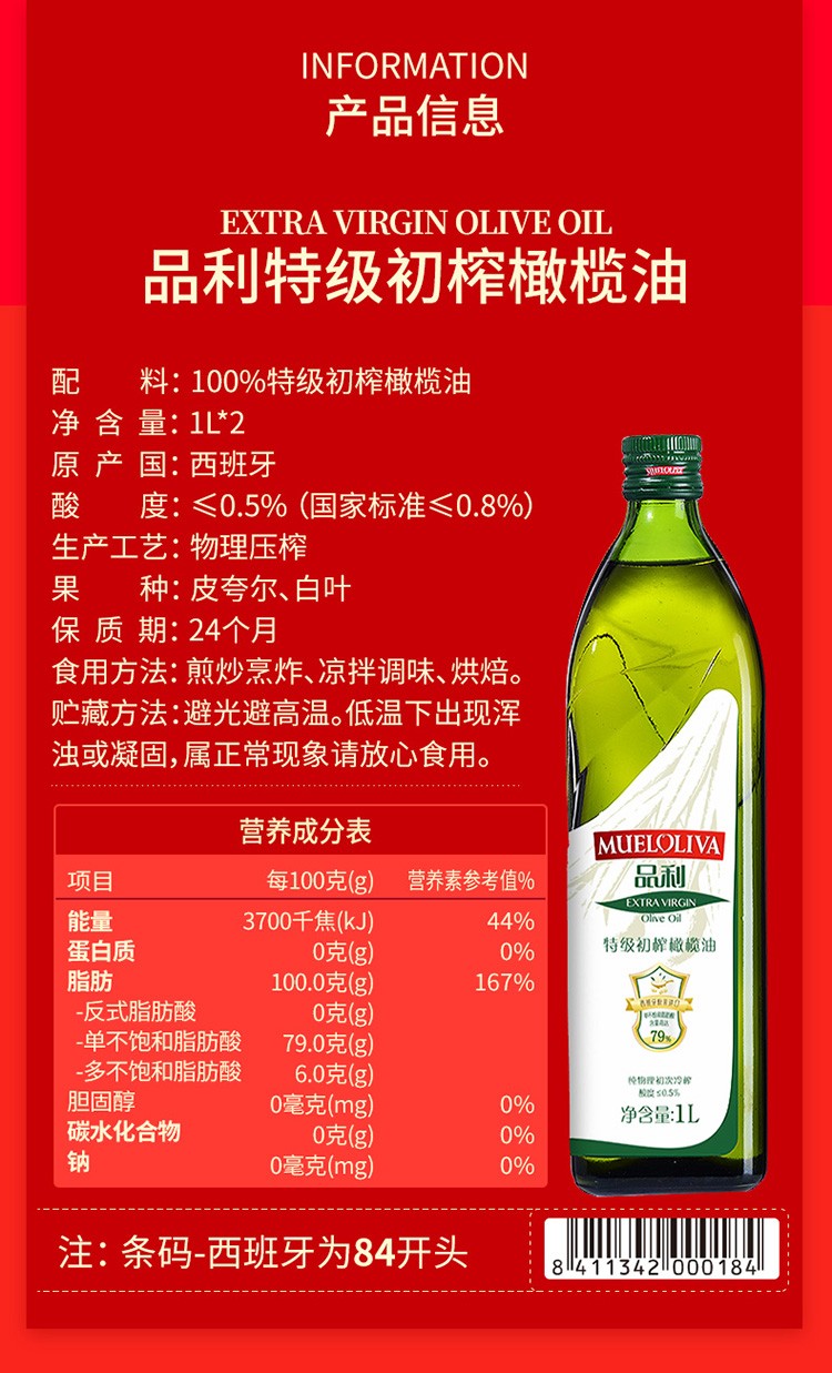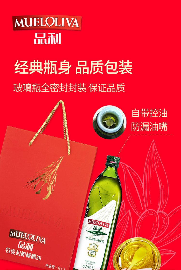 商品名称:品利 特级初榨橄榄油1L×2礼盒
