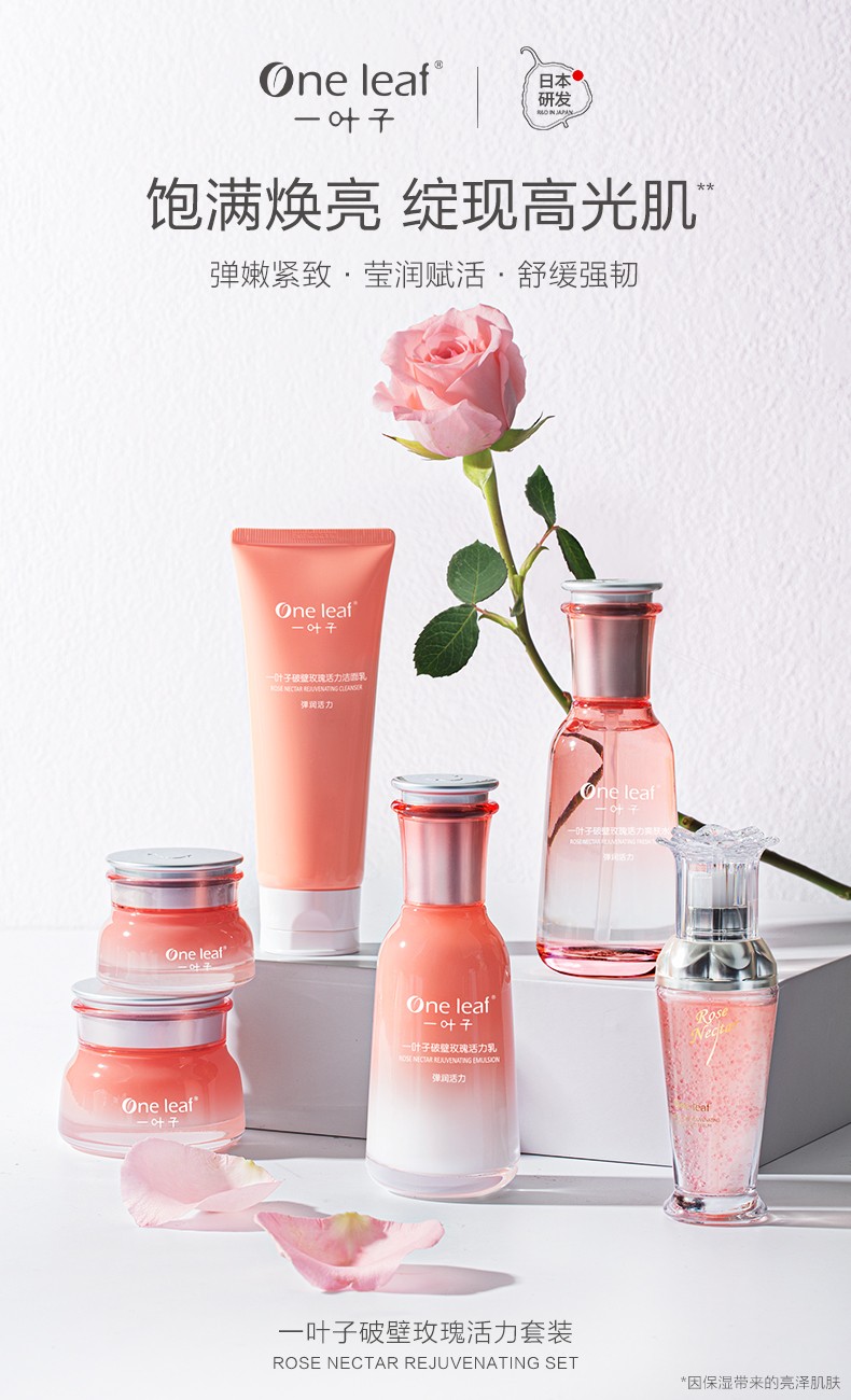 商品名称:一叶子 破壁玫瑰护肤洁面水乳三件组抗糖抗氧滋养修护 洁面100g+水100ml+乳液100ml