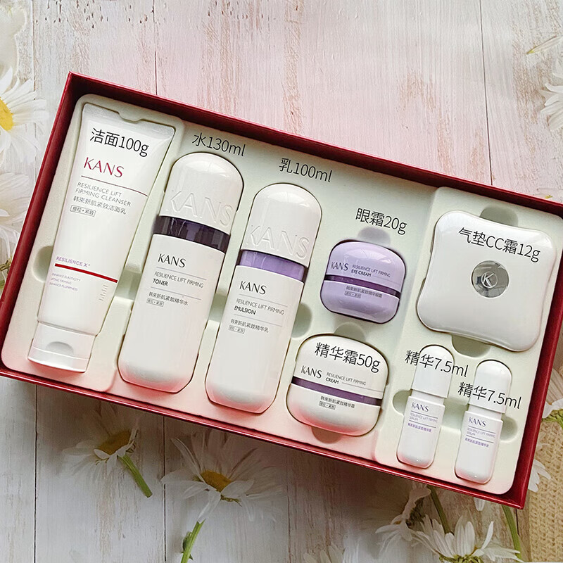 商品名称:韩束 赋颜紧致尊享礼盒 紫胶囊赋颜紧致尊享八件套(气垫12g+洁面100g+水130ml+乳100ml+霜50g+眼霜20g+精华7.5ml*2)