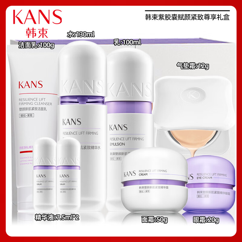 韩束 赋颜紧致尊享礼盒 紫胶囊赋颜紧致尊享八件套(气垫12g+洁面100g+水130ml+乳100ml+霜50g+眼霜20g+精华7.5ml*2)