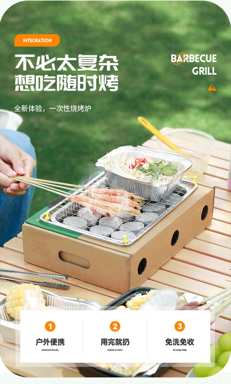 商品名称:趣游帮 一次性便携懒人烧烤炉YB02 (自带速燃碳) 6972436161348