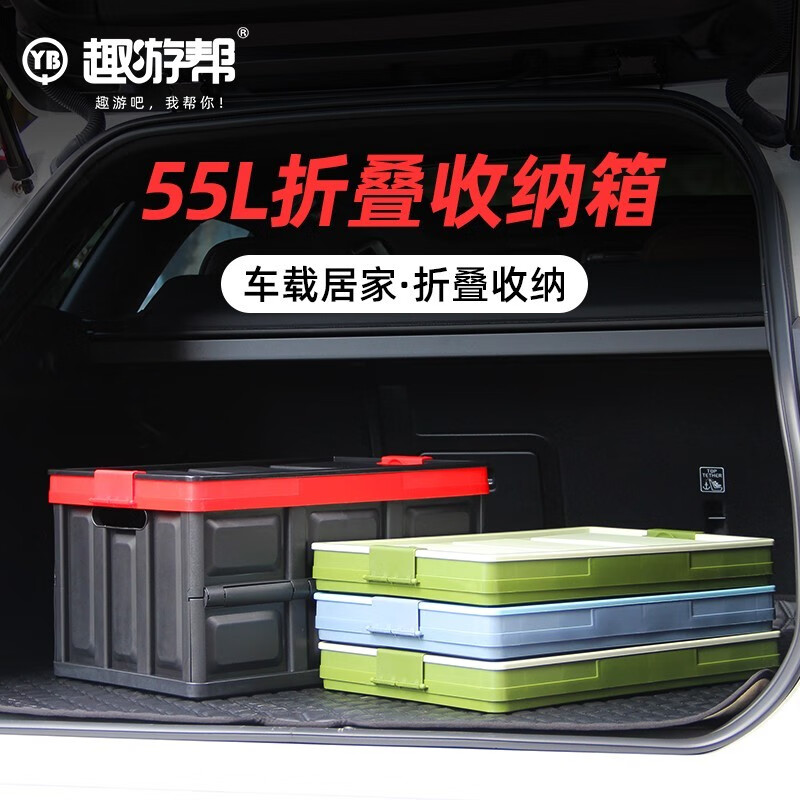 趣游帮 卡扣款折叠收纳箱55L Q510 炫酷黑/湖水蓝/抹茶绿 可选下单备注颜色