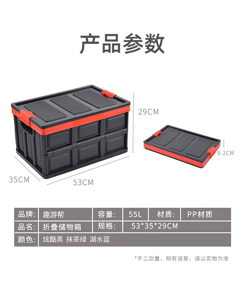 商品名称:趣游帮 卡扣款折叠收纳箱55L Q510 炫酷黑/湖水蓝/抹茶绿 可选下单备注颜色