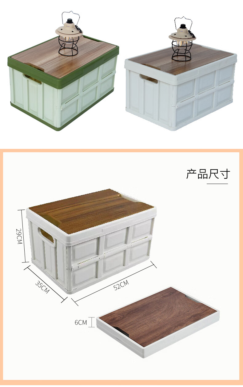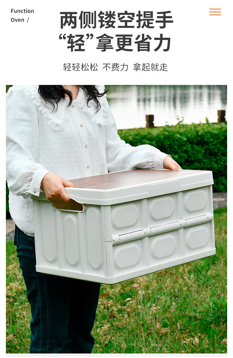 商品名称:趣游帮 木盖款折叠收纳箱55L Q515 优雅白/抹茶绿 可选下单备注颜色 6972436160600