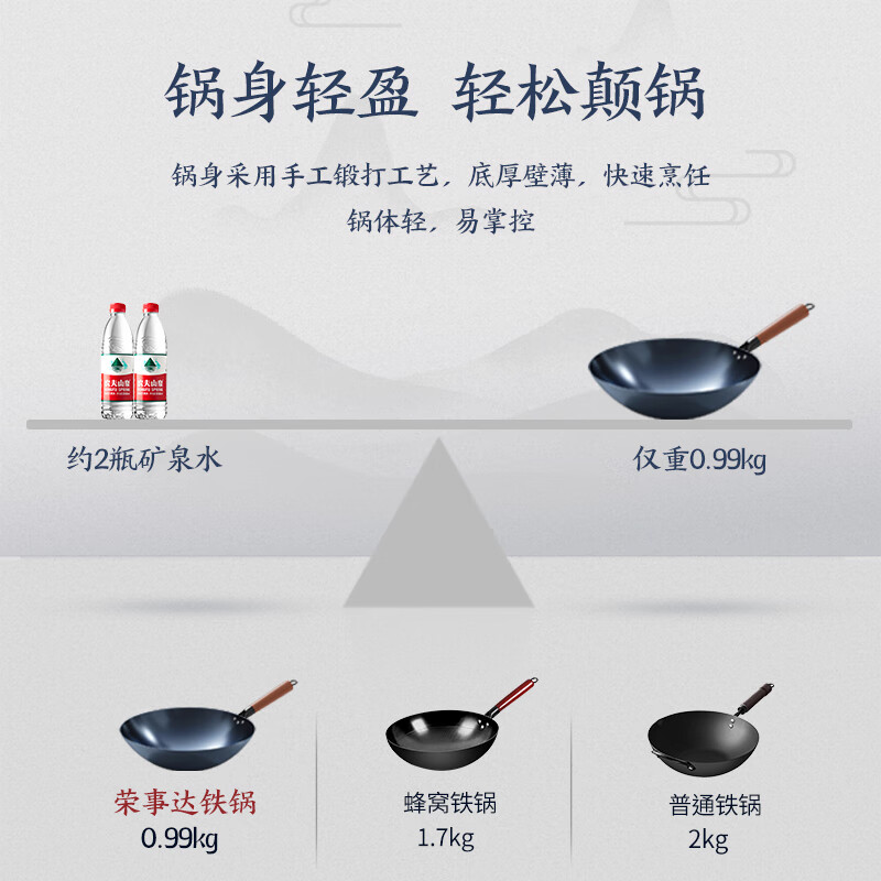 荣事达 团团圆圆无涂层烤蓝圆底老铁锅 32cm RSD051-FJ 6923473118666