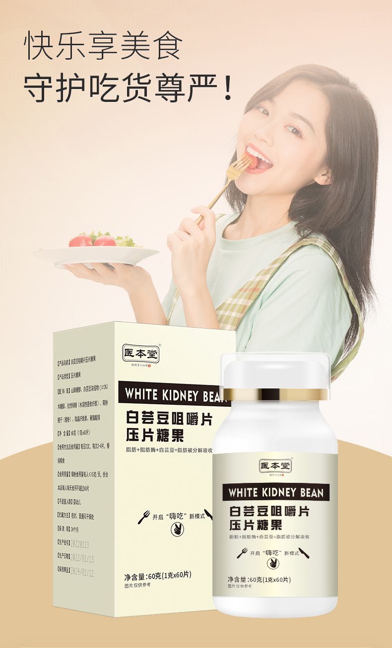 商品名称:医本堂白芸豆咀嚼片60克(1克*60片)*4瓶