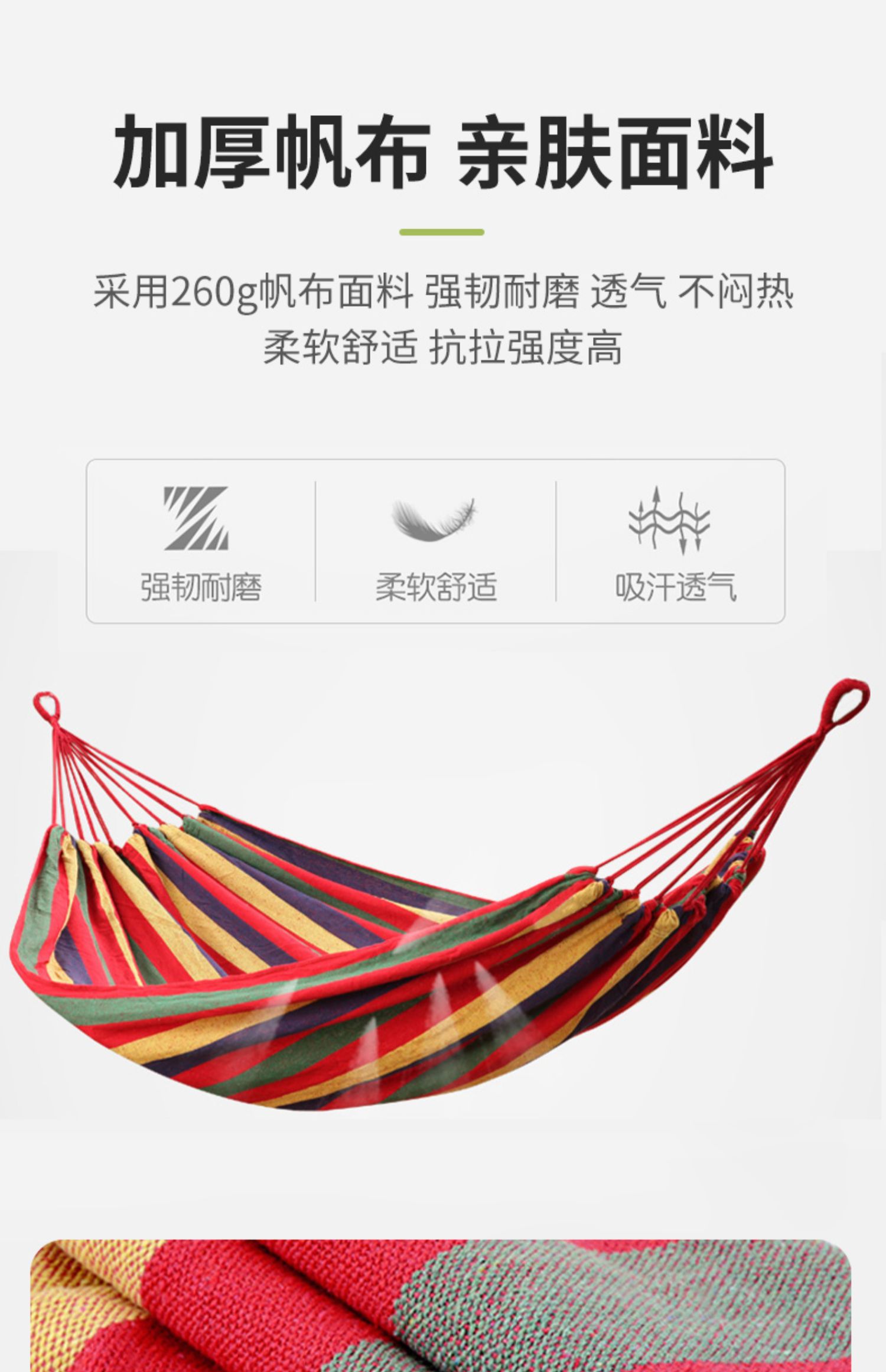 商品名称:凯速 户外野营绑绳帆布吊床HH21 彩虹色 CA20126046