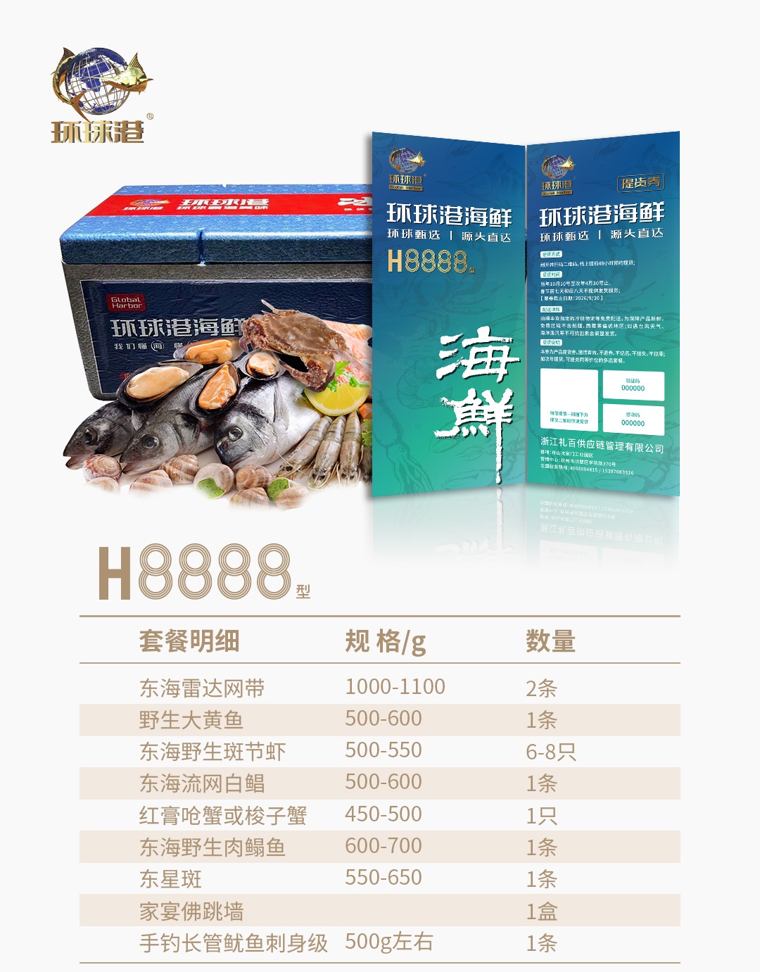 商品名称:环球港 高端海鲜冰鲜礼盒H8888型 5200g