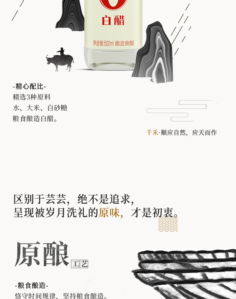 千禾 零添加180天本酿酱油(外阜)500ml+5°白醋500ml 6928312900204