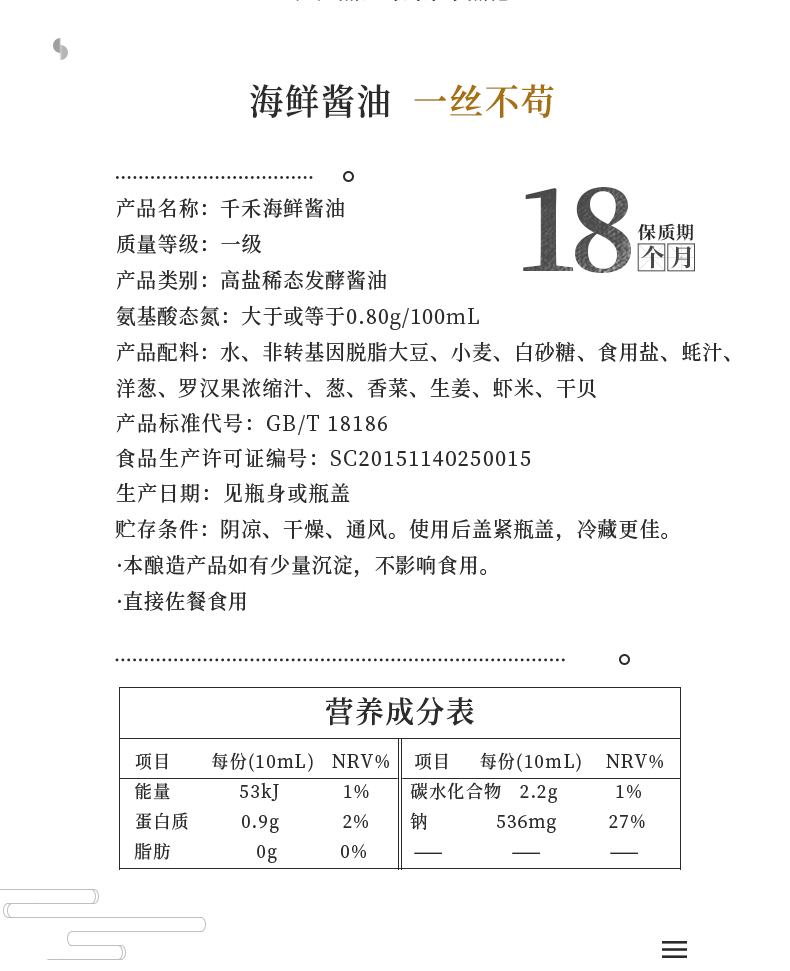 商品名称:千禾 海鲜酱油500ml+5°白醋500ml 6928312904622