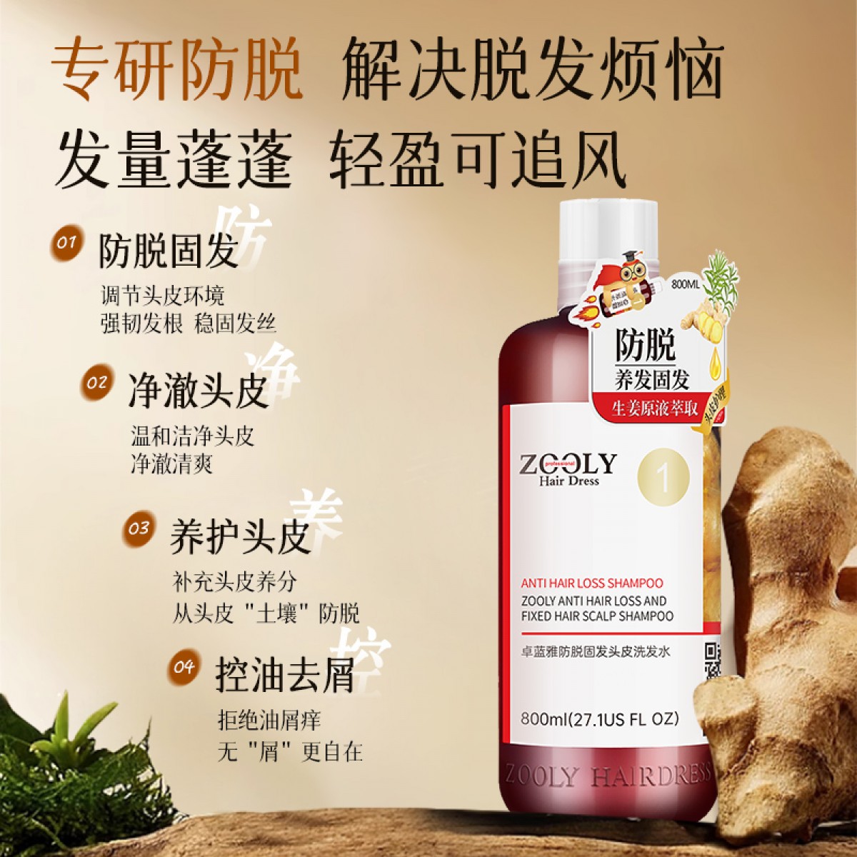 商品名称:卓蓝雅 防脱洗护组合800ml*2+清香沐浴露450ml