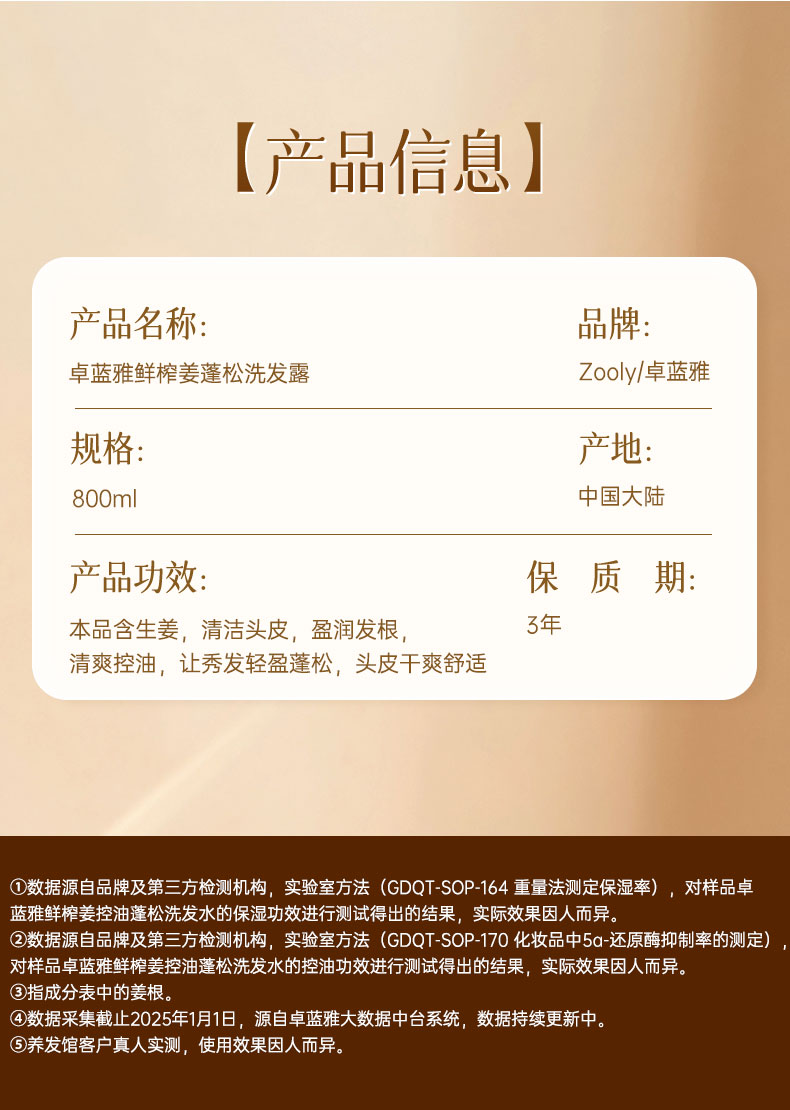 商品名称:卓蓝雅鲜榨姜蓬松洗发露800ml