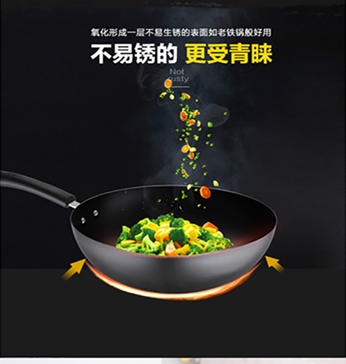 爱仕达30cm不易锈精铁无涂层炒锅CF30B1TG 6921880791939