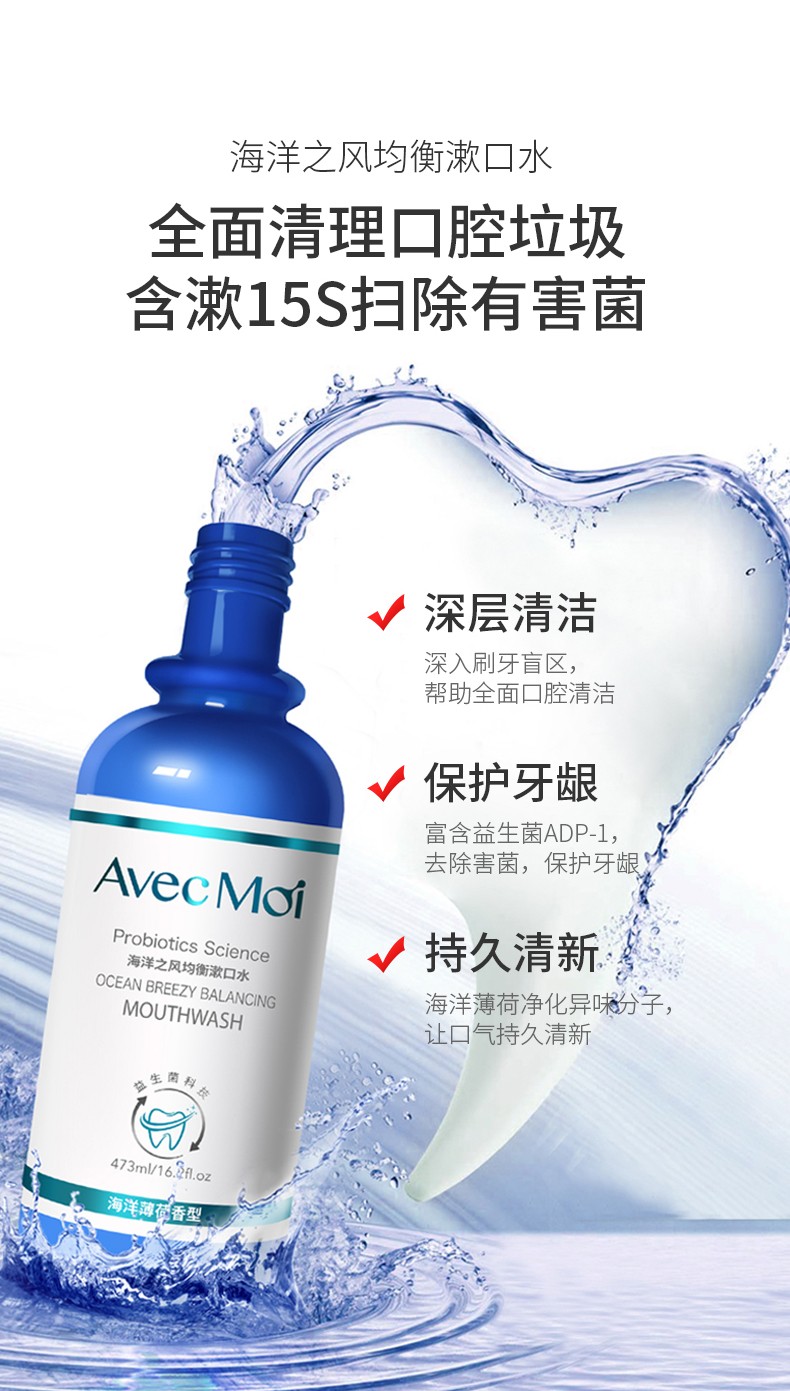 商品名称:AVEC MOI 海洋之风均衡益生菌漱口水473ml*2瓶 6945573607642