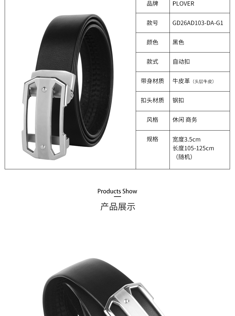 商品名称:PLOVER商务男士自动扣底鸵鸟纹皮带GD26AD103-DA-G1 黑色