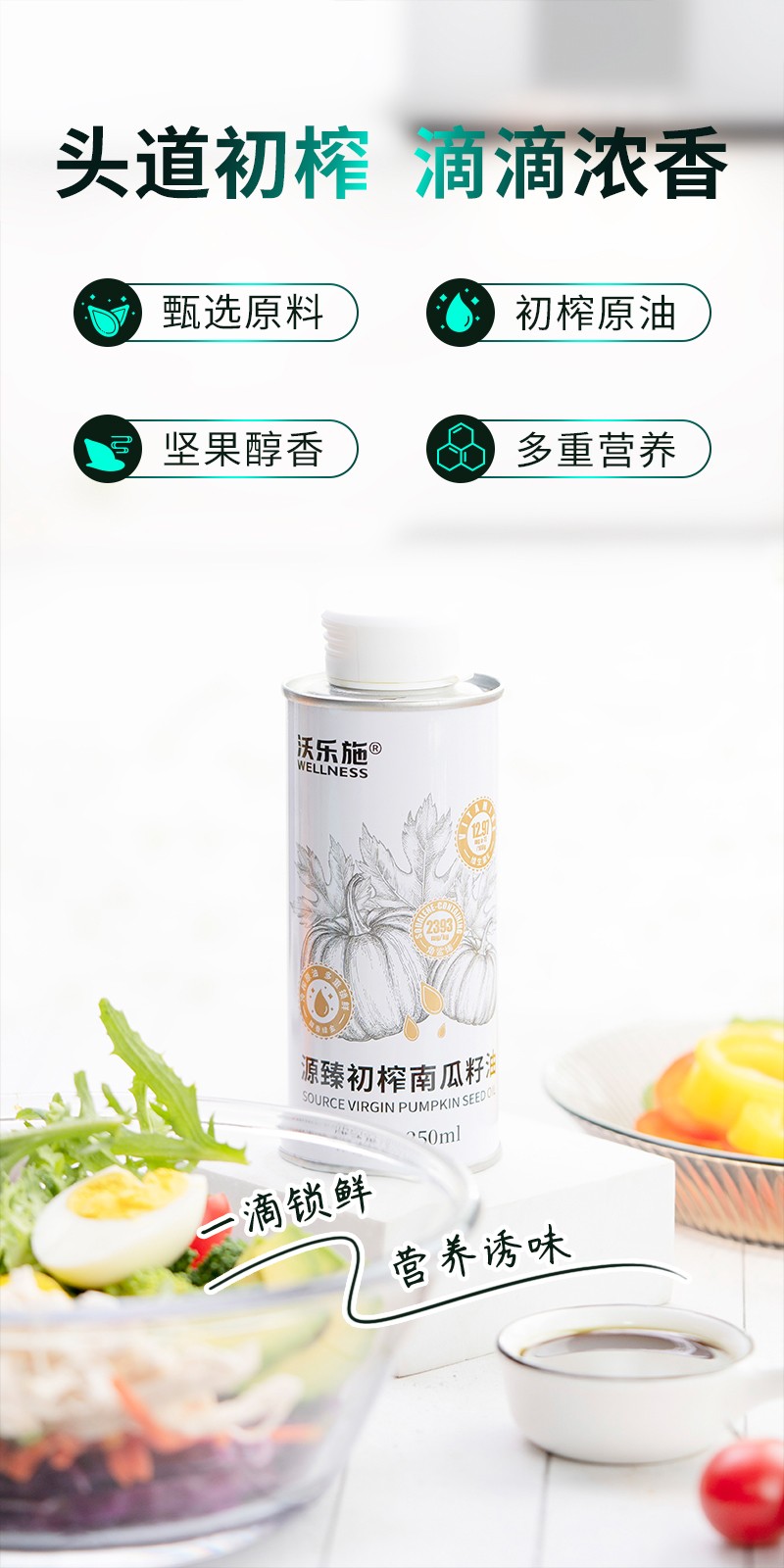 商品名称:沃乐施 源臻初榨南瓜籽油 (单瓶)250ml/罐 4897132070010