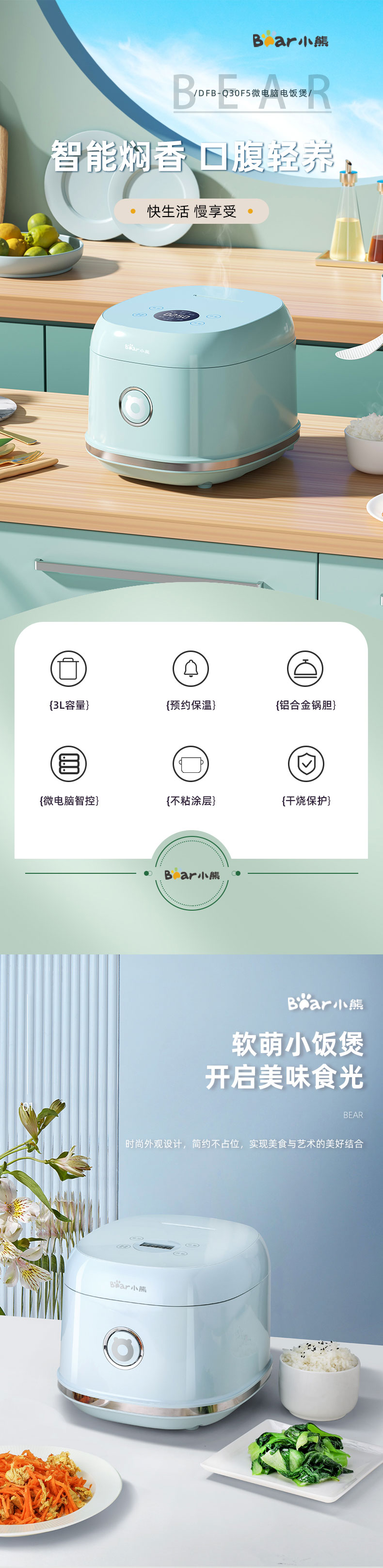 商品名称:小熊微电脑电饭煲 DFB-Q30F5 薄荷蓝 3L容量