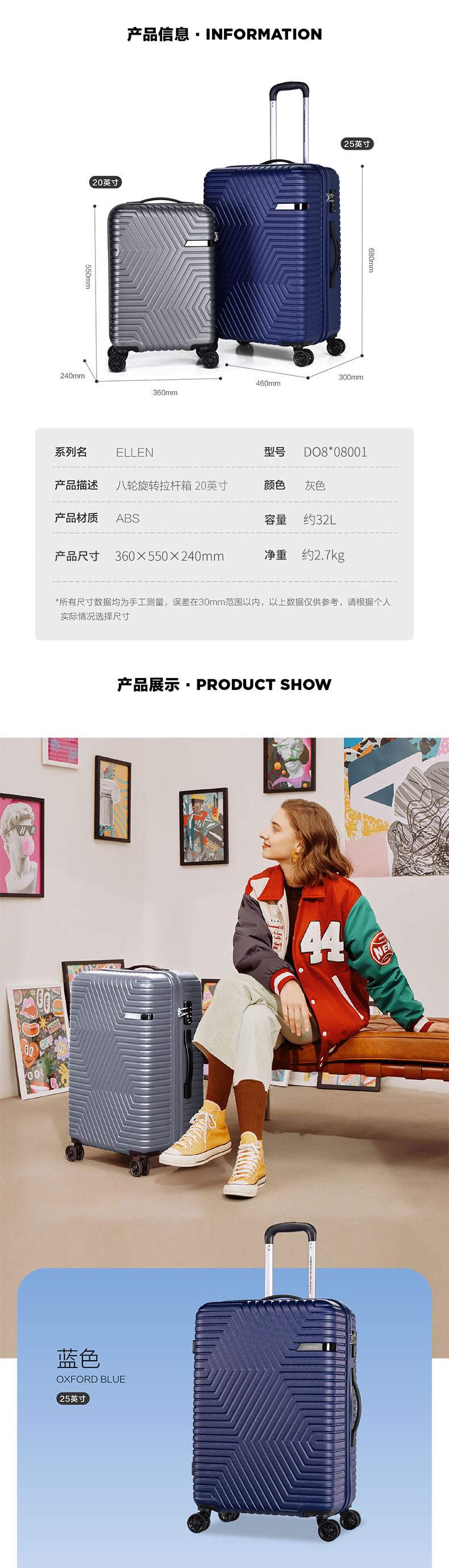 商品名称:美旅拉杆箱 DO8*08001 灰色55高/20寸