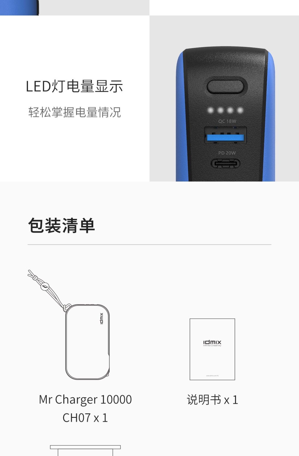 商品名称:大麦idmix 旅充电源适配器10000mAh CH07