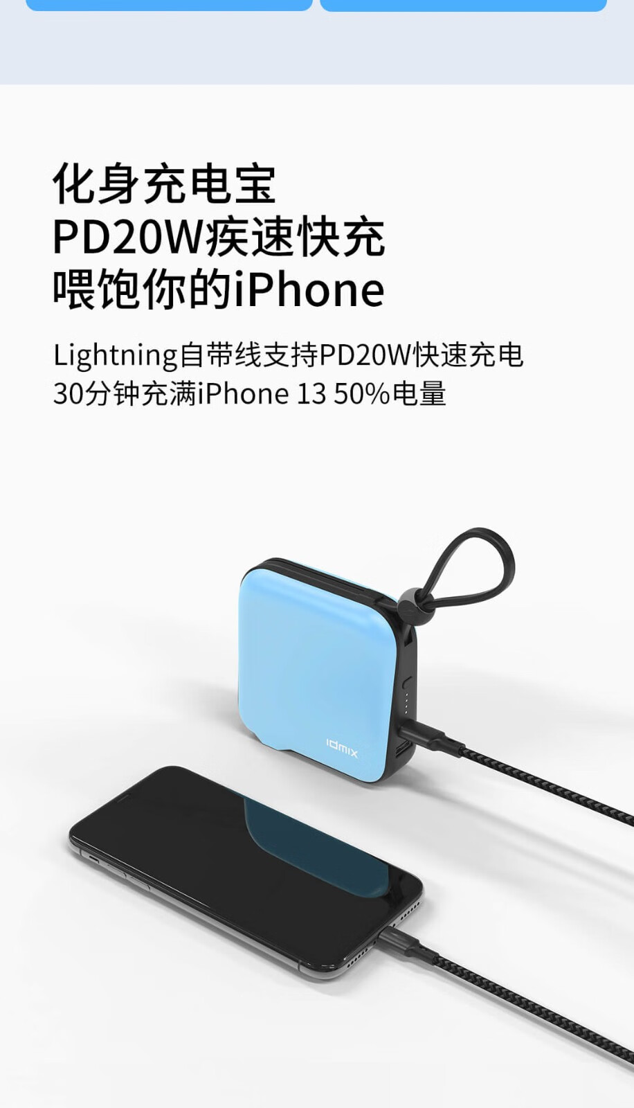 商品名称:大麦idmix 旅充电源适配器MFI升级苹果版10000mAh CH05PRO