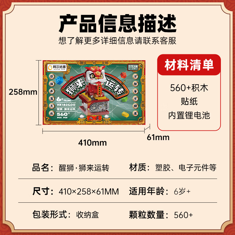 商品名称:阿尔法蛋·醒狮-狮来运转电动积木科教玩具