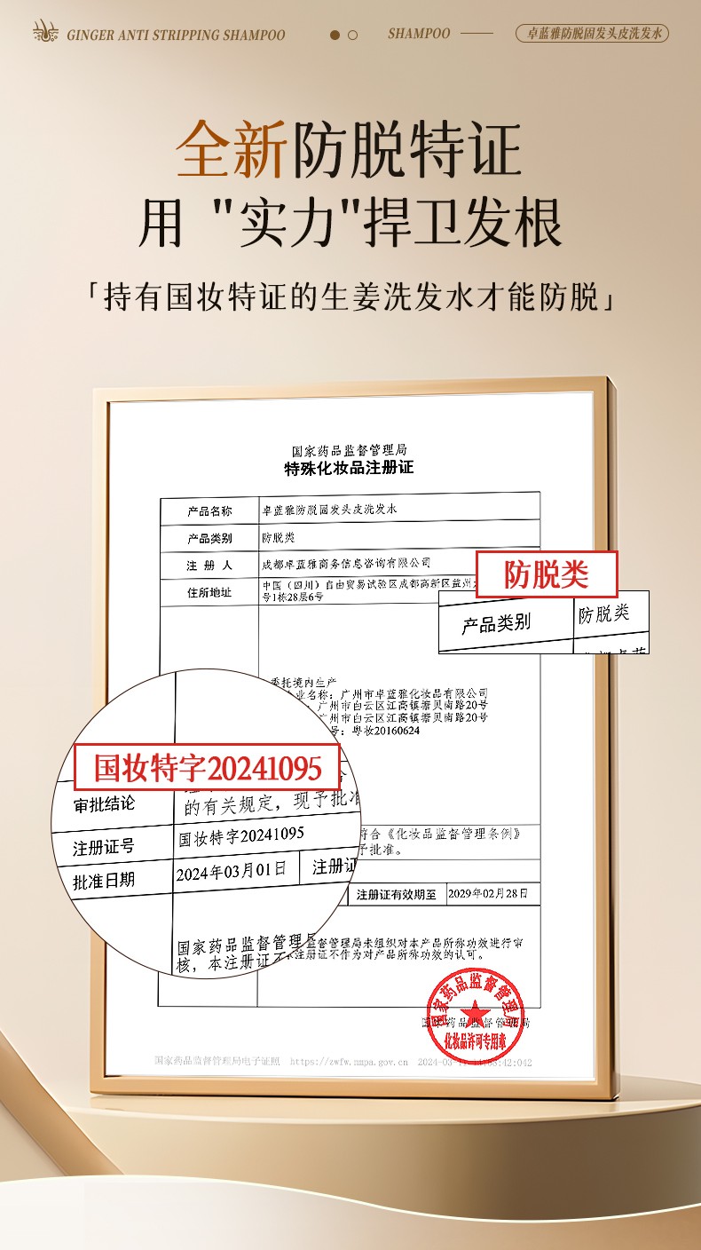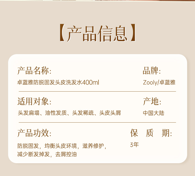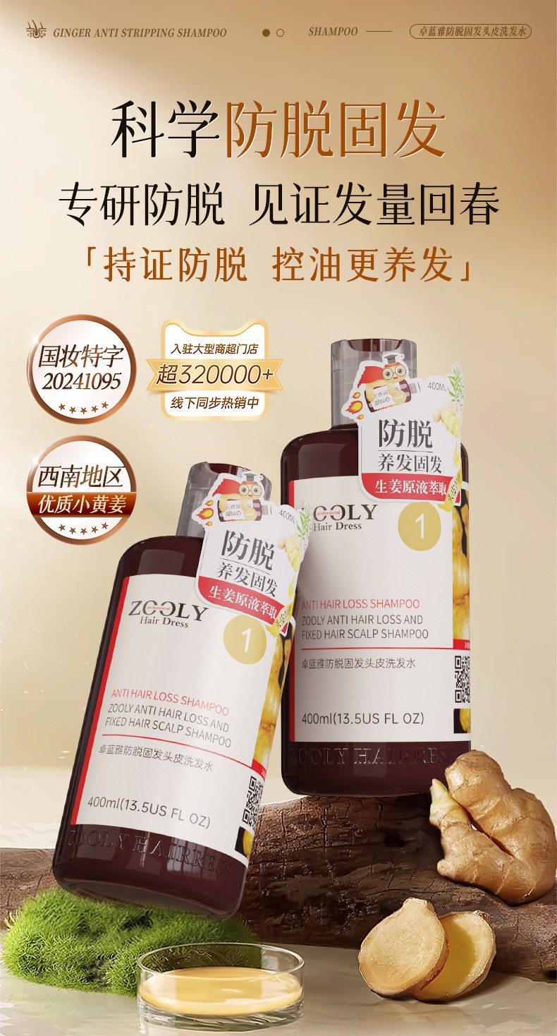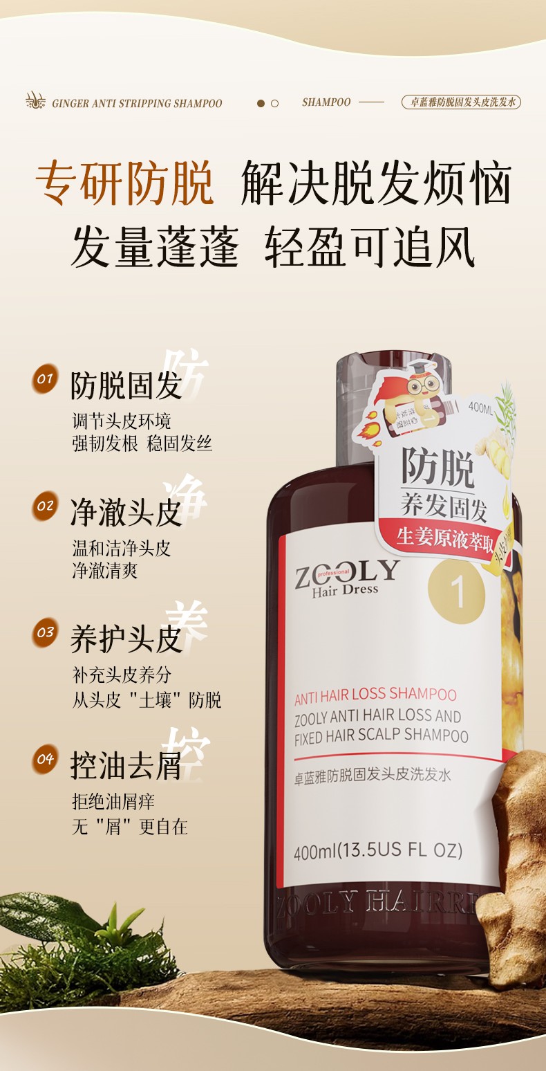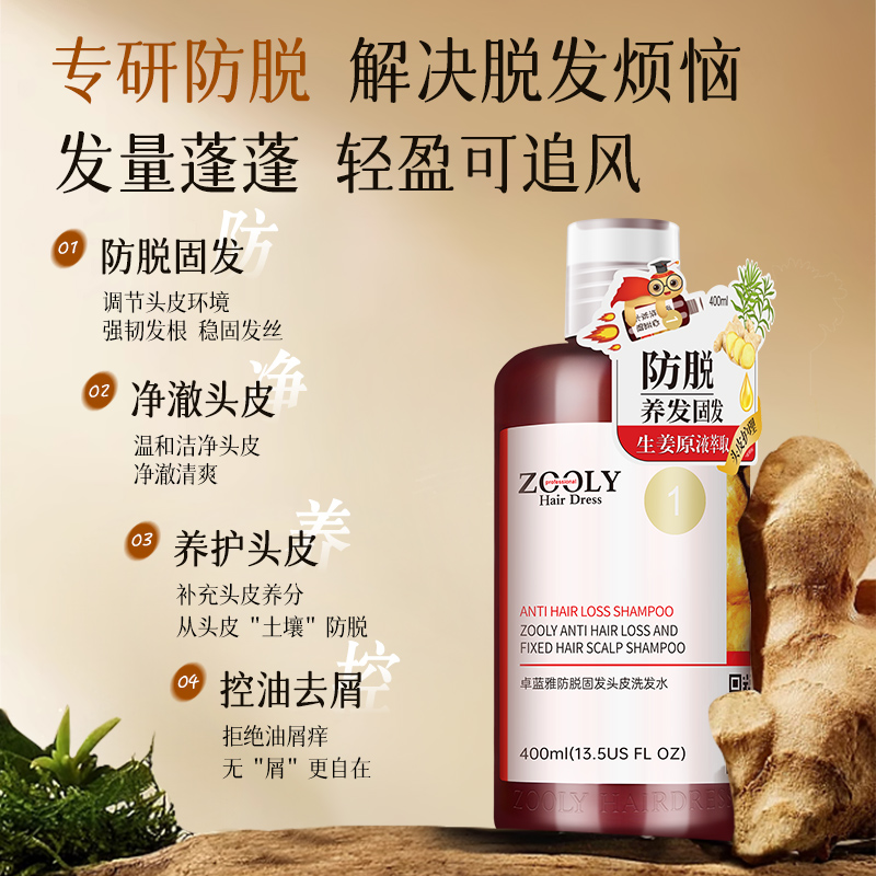 商品名称:卓蓝雅生姜防脱洗发水400ml+防脱精华液50ml(10号 镇店款)