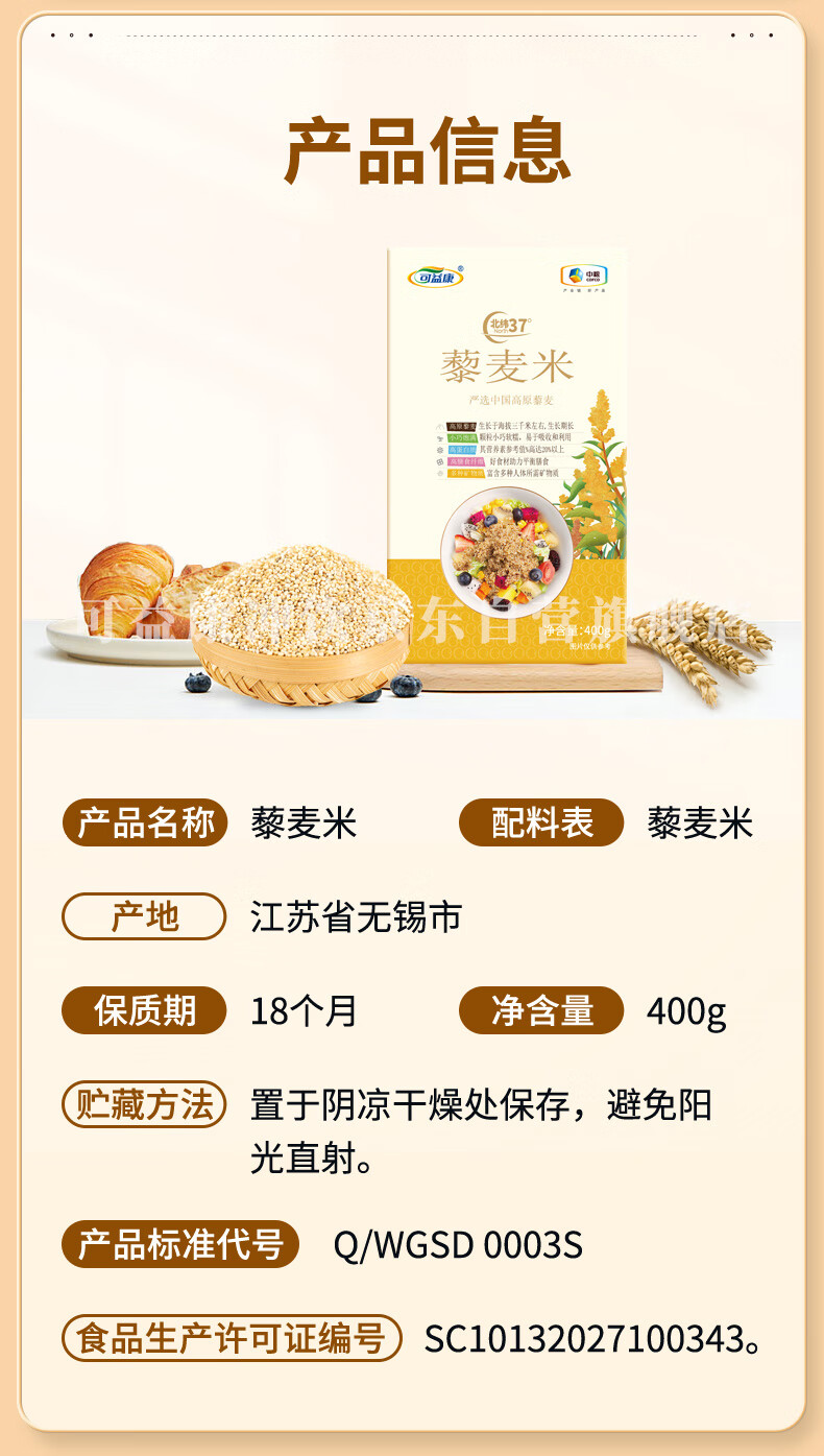 商品名称:中粮 可益康藜麦米400g*2 6922510822054