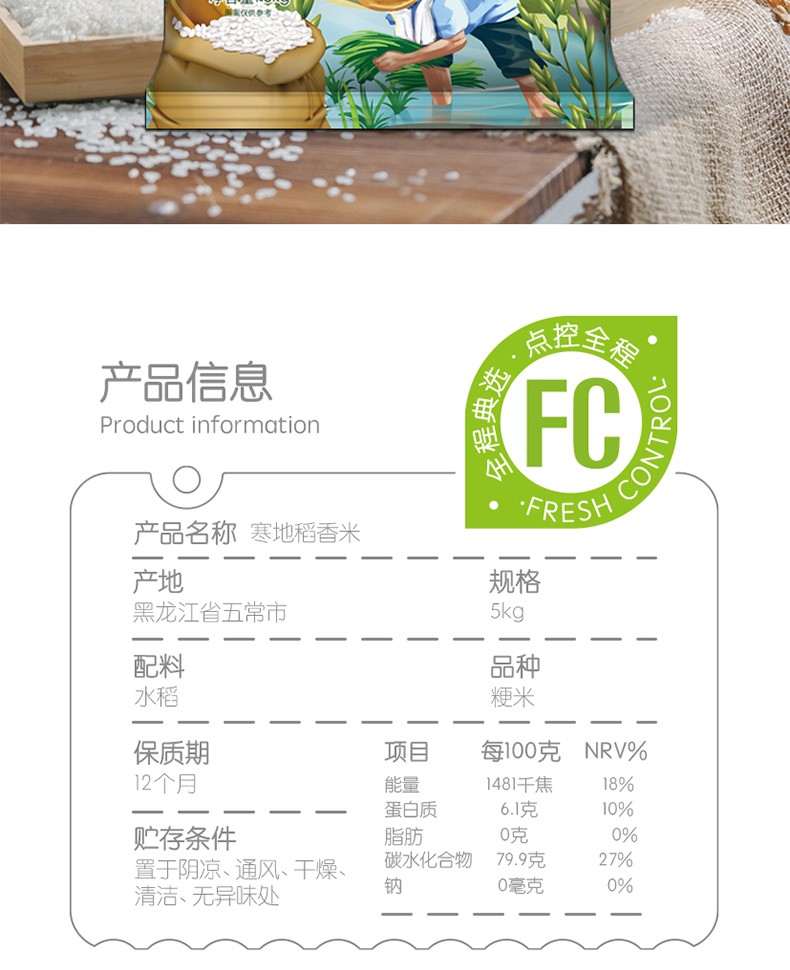 商品名称:北大荒 典选东北寒地稻香米5kg 6973994602205