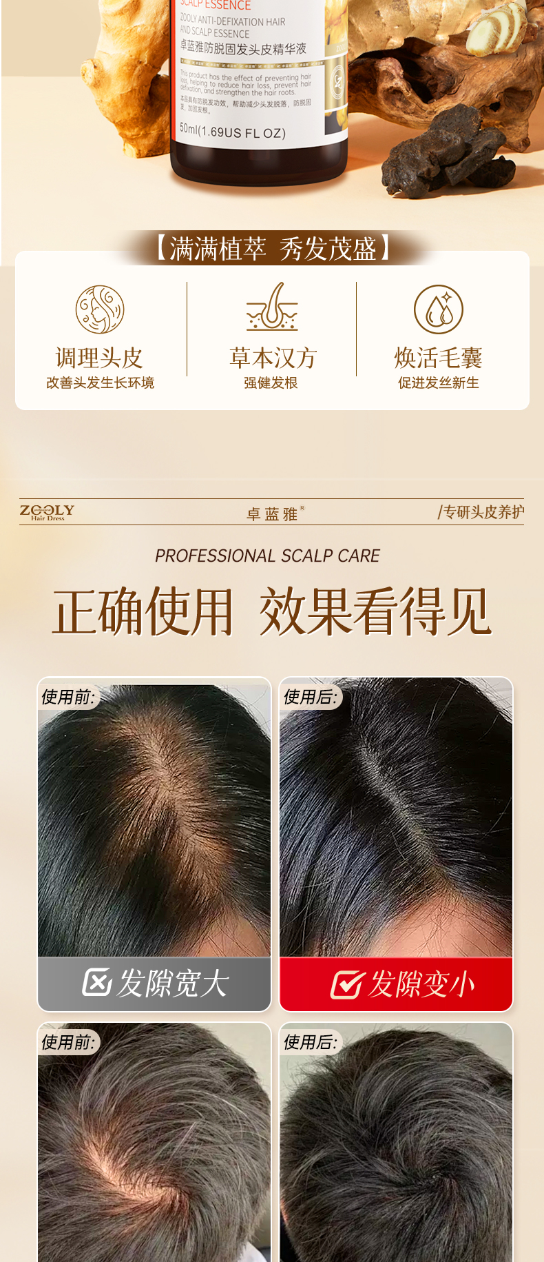 商品名称:卓蓝雅生姜去屑洗发水400ml+生姜防脱精华液50ml