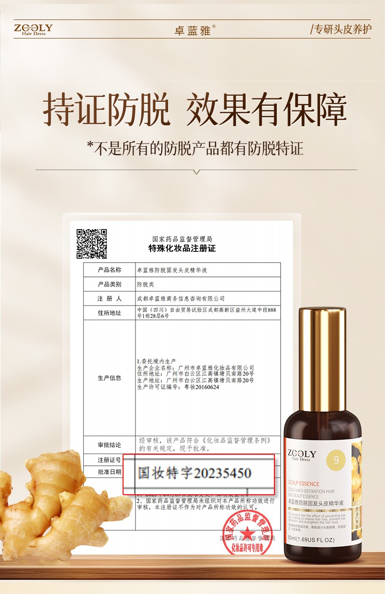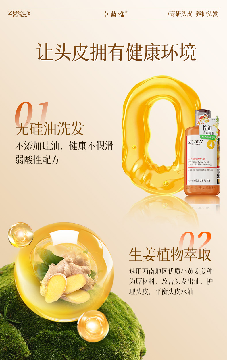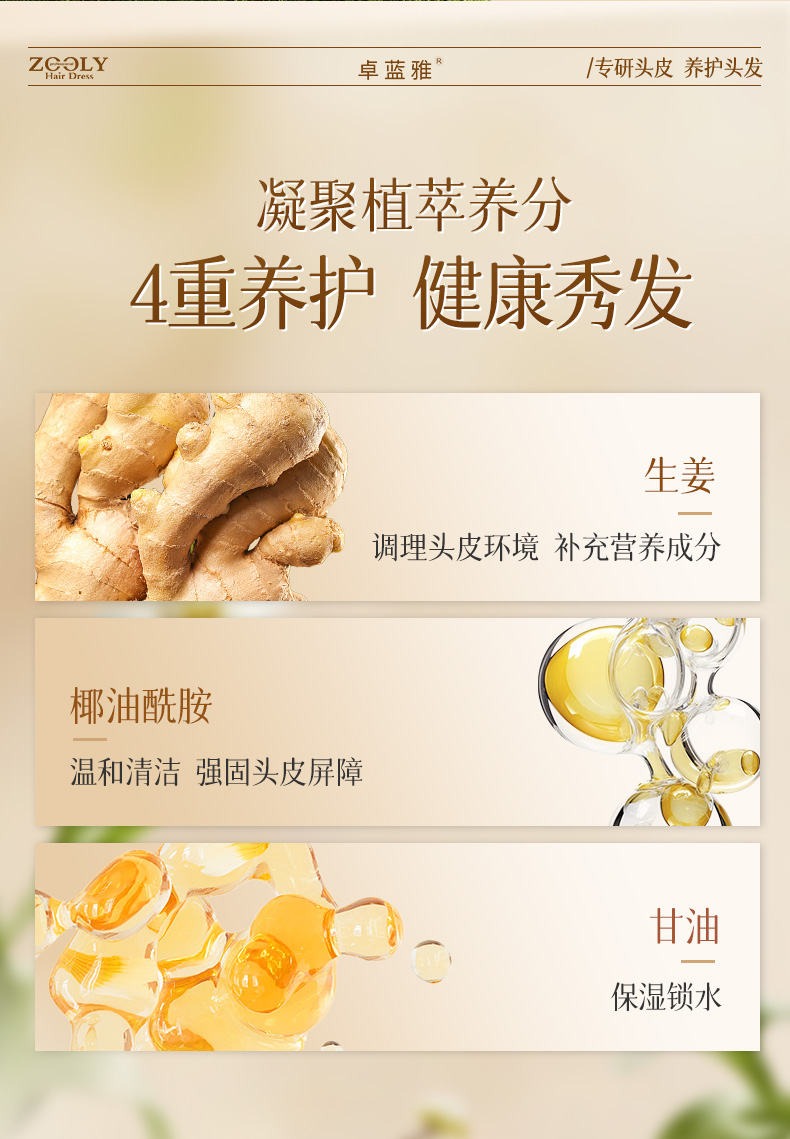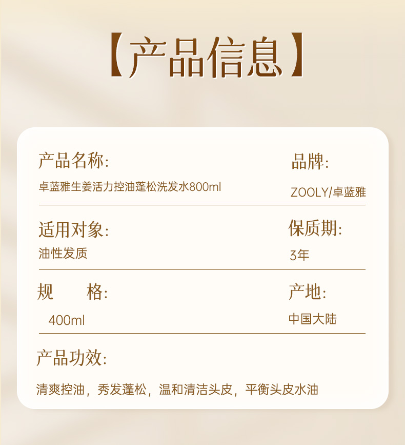 商品名称:卓蓝雅生姜控油洗发水400ml+生姜防脱精华液50ml