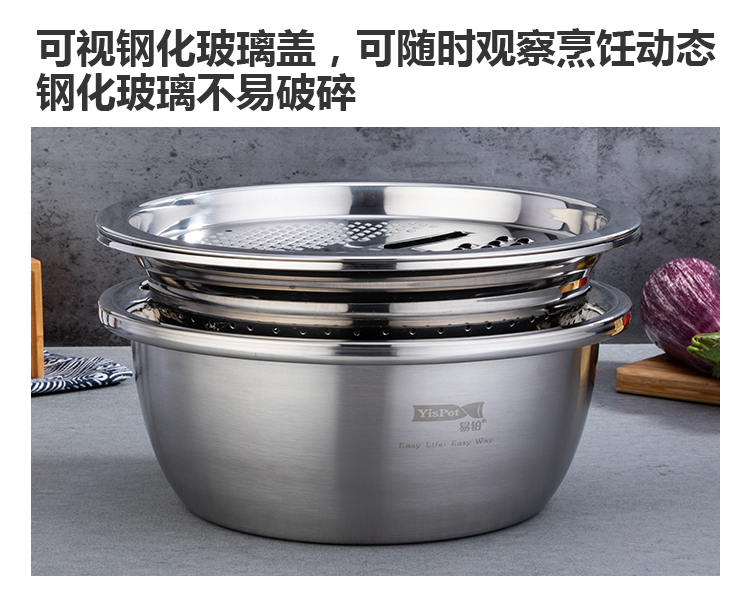 易铂yispot 哈伦三件套不锈钢淘米筛刨丝器套装洗蔬菜水果削皮削片多功能三件套YP-8076 28cm